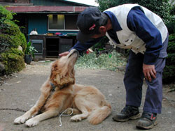 真冬の今は朝なかなか起きられなくて、歩く時間がめっきり減りました。 歩き始めてしばらくして、すぐそばに何匹か犬を飼っているお家があるのを見つけました。 そばに寄っていくと、会社の資材置き場の入り口にいた3頭のうち、2頭は敵意を露わに吠えました。 その時、最初からしっぽを振り振りこちらに寄ってきたのが「散歩でワン!」のKeishiくんです。 あとの2頭も吠えなくなって、おやつをねだるようになりましたが、Keishiくんが一番かわいいです。 初対面の印象って重要でしょ? 彼は米軍基地生まれだそうです。最初はまったく日本語が通じなかったそうです。 日本語を教えたのが資材置き場に毎日出入りしていたKeishiくんが大好きなおじさんだそうです。 今ではすっかり英語は忘れてKeishiはバイリンガル犬にはなりそこねました。 餌代もかかるし、人間と違って保険がないから動物病院は高いし、犬を飼うのは決して楽ではありません。 私は毎朝楽しく遊ばせてもらっていて、感謝しています。(2002年02月01日記)