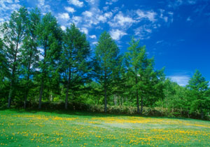 前から常宿のスタッフから「初夏の志賀はとてもきれいだ」と聞いていたので、去年初めて訪ねたのでした。 梅雨の真っ最中に青空が広がった日。 カラマツが芽吹いて優しい緑の針葉を伸ばし、芝生にはタンポポと薄紫の花が咲き乱れ、形のいい雲が浮かんでいる。 そんな写真を年賀状に選んで印刷して投函しました。