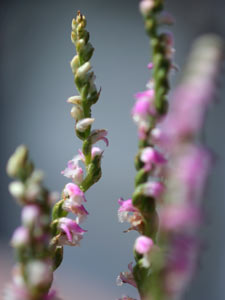 だんだん増えて、今はたくさん咲きます。 ネジバナの1つ1つの花は小粒の可愛い蘭の花。ねじれ方には右巻きと左巻きがあって、2本のネジバナが右巻き、左巻きで並ぶ姿も可愛いです。 ぐるぐるひょろ長い螺旋階段みたいな花なので、毎年、咲いた花を写真におさめるのに苦労しています。 今年もネジバナは葉っぱを出して、花を咲かせる準備をしていました。 春に中古のkissデジタルを買ったので、今年は100mmのマクロレンズをつけてネジバナが撮れる。 望遠マクロで背景はきれいにぼかせるから、去年までと違った写真が撮れそう! ところが、昨日、バルコニーに出たら、ネジバナのピークは既に終わっていました。 梅雨入りしても毎日お天気がいいので、残った花も水不足で花びらが傷んでいます。 今年もかろうじて可愛いピンクの花は見られたけれど、これじゃぁ写真にならん。 今年は今まで撮ってきた中で、最悪のネジバナとなりました。 野鳥が運んできてから毎年、毎年、カメラにおさめてきたネジバナ。 今年は撮りそこなってしまった。 |